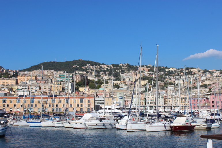 Встретив рассвет на борту, мы прибыли в Геную. Мне город понравился, мужу нет. Хотя мне кажется, что город настолько разнообразный и разносторонний, что каждый найдет что-то, что не оставит равнодушным именно его. Такое ощущение, что там смешались несколько абсолютно разных городов. Где-то напоминает Барселону, где-то Валлетту, где-то ТТК Москвы))) На одной улице дворцы, лепнина, фрески; на соседней - трущобы, мусор, мрак. Почти все самое интересное находится, конечно, в порту.