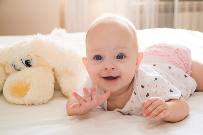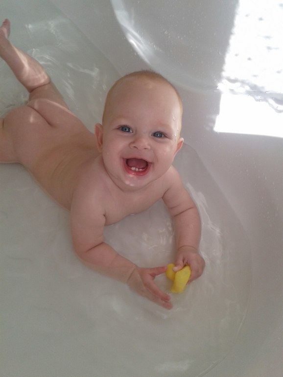 За этот месяц Полиночка научилась вставать,садиться и хорошо ползать. Она громко гулит, с невероятным энтузиазмом вырывает мне волосы звонко повизгивая,очень любит всех животных,особенно кошек и просто обожает грызть провода. Каждый новый день начинается с ее зубатой улыбки!