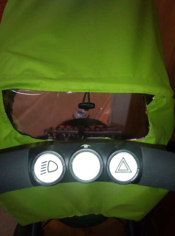 Комплект выполнен из мембранной ткани, плащевки и американского флиса. Капюшон не промокает, не продувается и хорошо защищает от непогоды. Чехол на ножки тёплый непродуваемый, мягкий, прекрасно держит форму