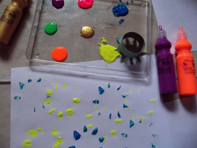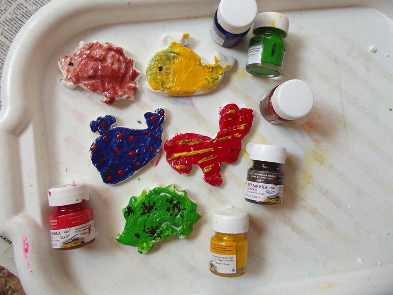 Еще мы используем различные краски - акриловые ,витражные,для ткани.Их покупаю в Леонардо.Стоят они копейки.