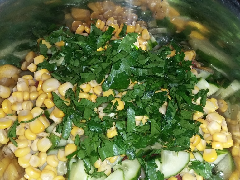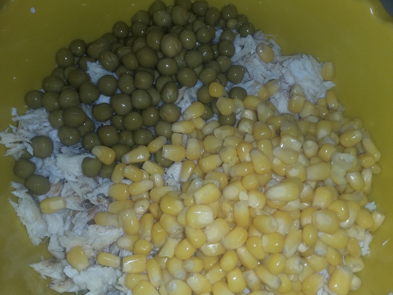 Добавить горошек и кукурузу: