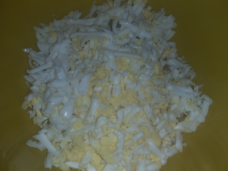 Натереть яйца на крупной терке: