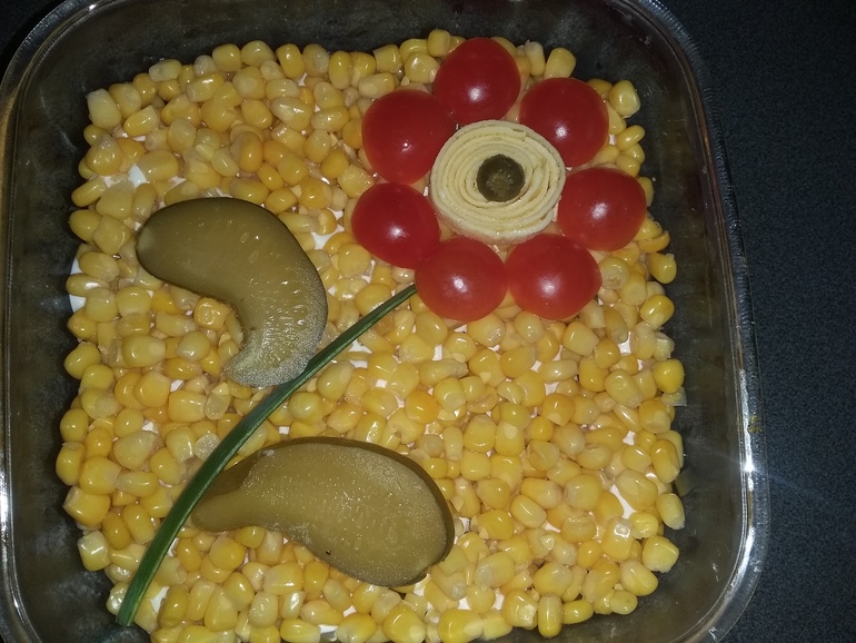 Сеточка из майонеза и консервированная кукуруза: