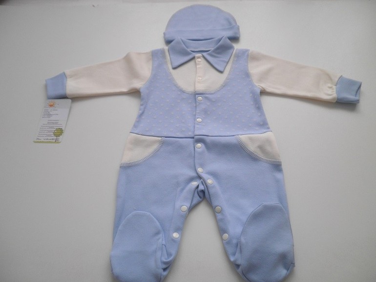 Комплекты на малышек комбинезон+чепчик с рюшем. Цвет молочный, розовый, синий, жёлтый. Размеры 56, 62. Интерлок (100% хлопок)