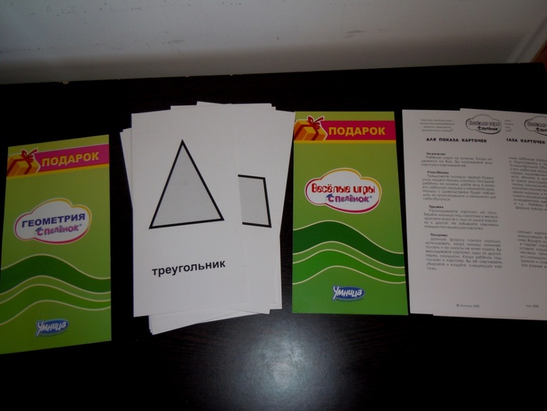 Геометрия с пеленок (23 фигуры) и набор Веселые игры - разные варианты игровых занятий с карточками.