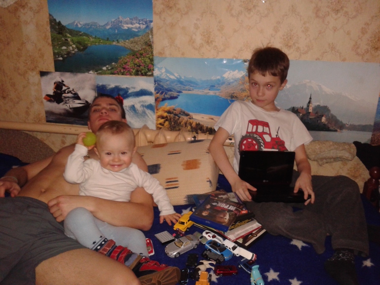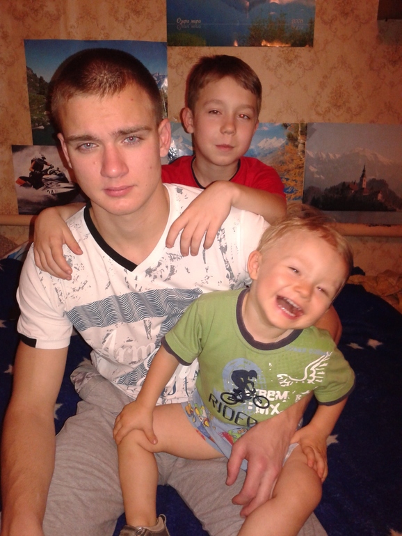 Старший сын Павел 18 лет, средний Александр 9 лет и младшему , Никите 1 год!