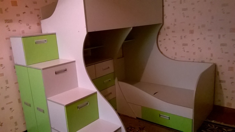 Теперь это домашний аттракцион. Только глаза мама успевай закрывать... начали прыгать с верхней ступеньки