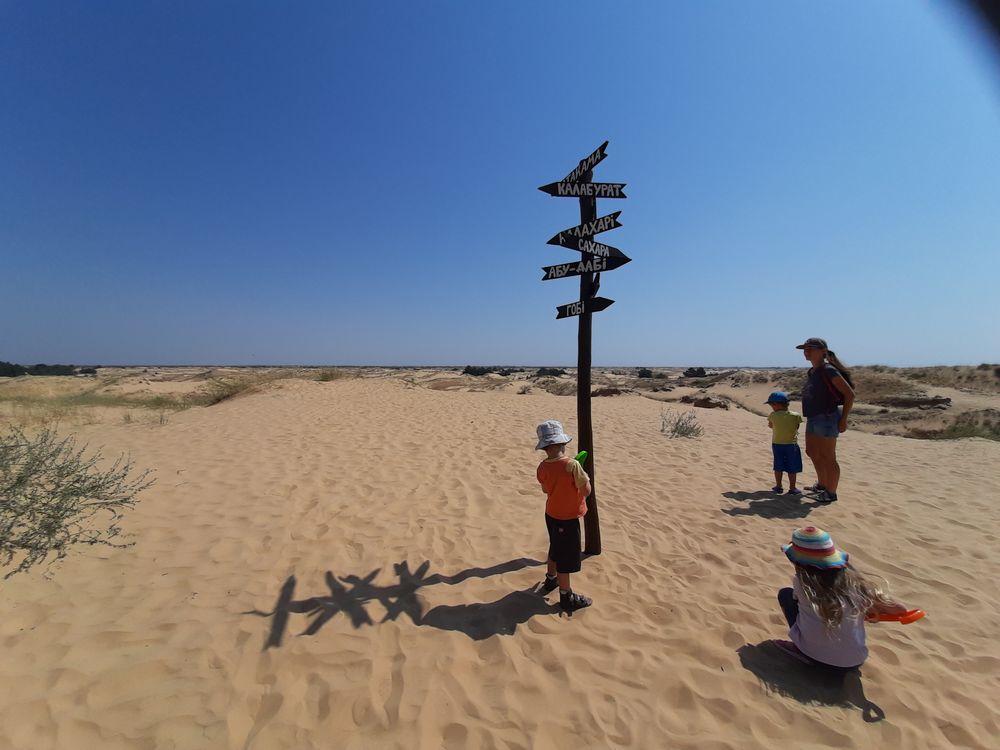 На третий день попали в Олешковские пески - самую большую пустыню Европы. Время года неудачное 😆 лучше ближе к зиме. Детям не понравилось совсем. Даже маленькая прогулка обернулась скандалами.