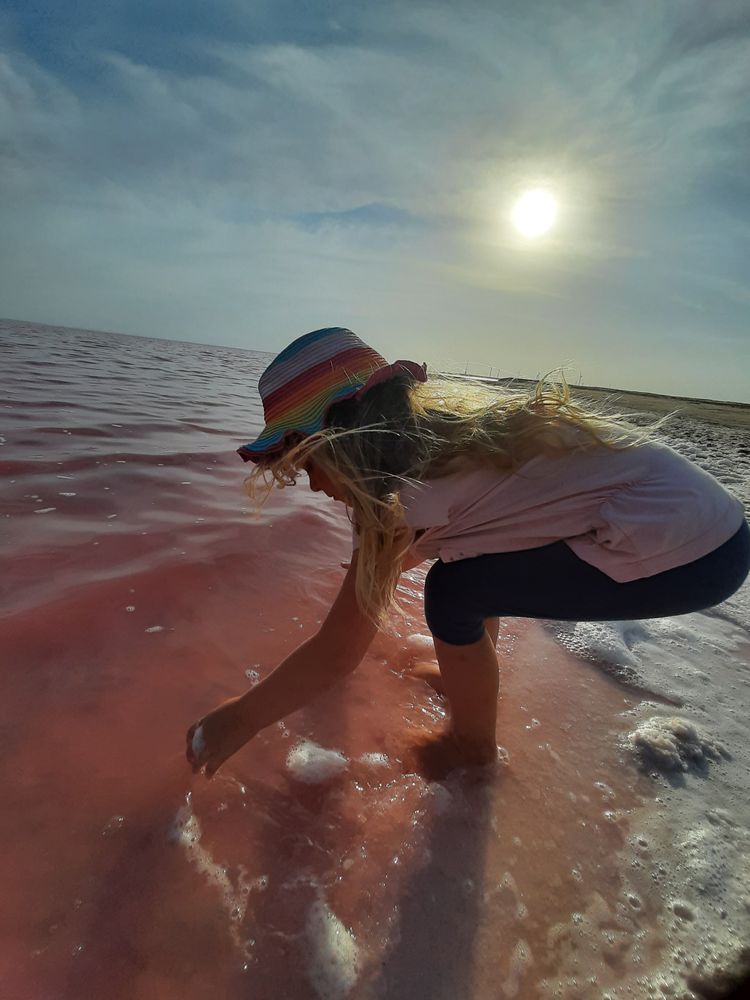 На следующий день днем мы вернулись на материк. И поехали на одно из розовых озёр Украины - на Лемурийское озеро.