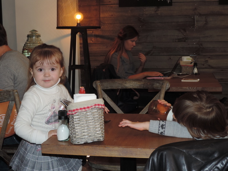 Девочки у нас как поели, то пошли за отдельный столик. Наверно не интересно с нами было))