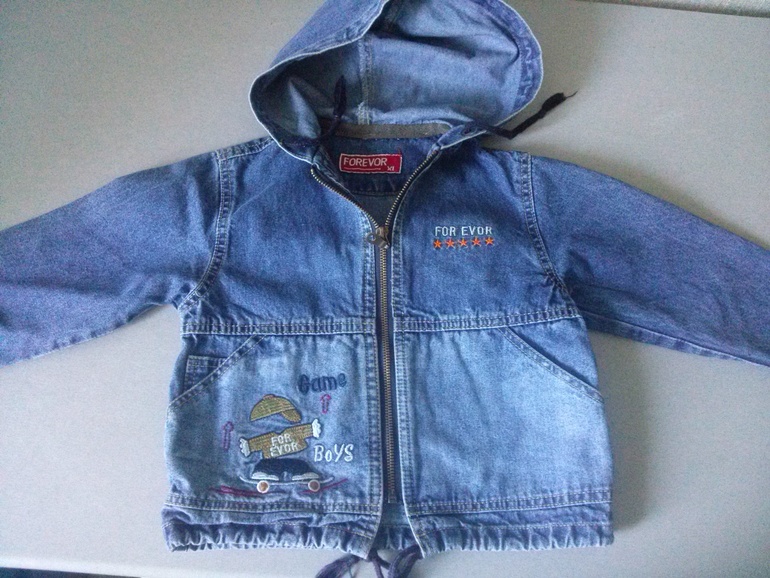 12) Куртка джинсовая 98 размера (мы носили с 96 до 104) 200 р.