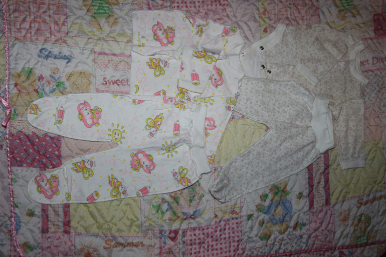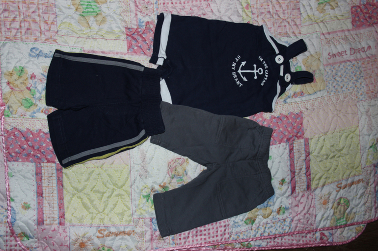 Пижама экв. 100 и костюм,размер 0-3,экв.150 Слип, экв. 350 за все.Песочник в отличном состоянии. Размр 0-3. Экв. 150
