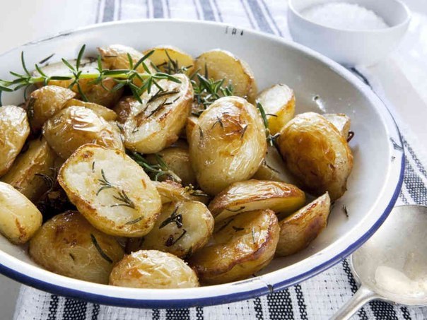 Картофель в кожуре помыть, сделать надрезы ,чтобы вышла гармошка. Можно просто разрезать напополам картофелины(как на фото). Посыпать розмарином и солью. Выпекать 30-40 минут при температуре 180 гр.