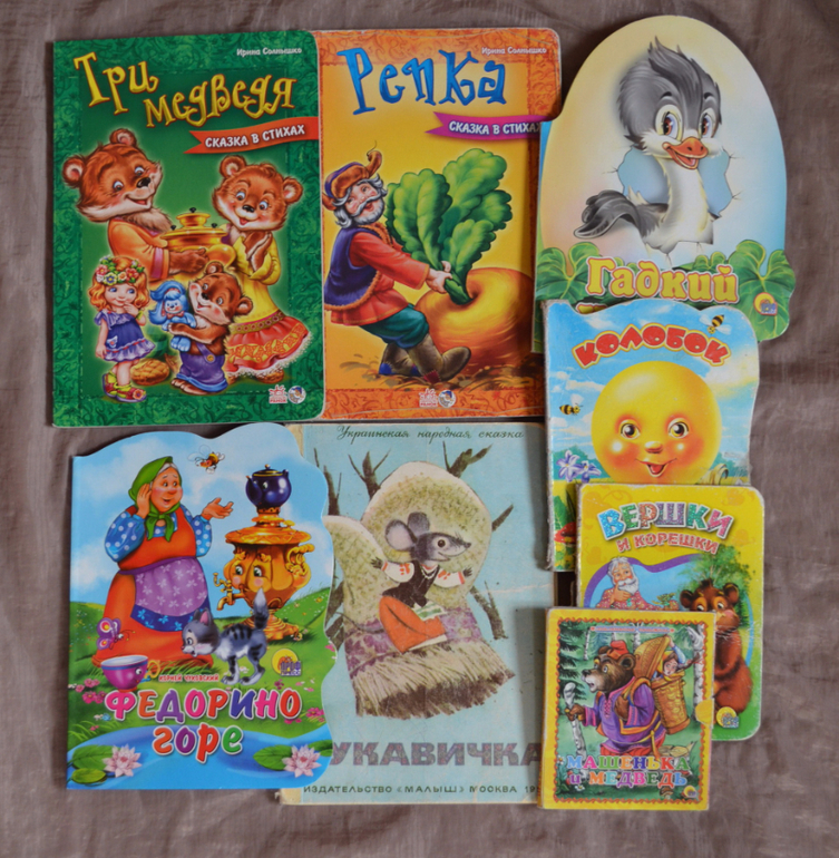 Первая - это всевозможные сказки. Дочка приносить их читать практически каждый день и в каждом возрасте у нее были свои любимчики. Например, первая сказка которая ее очень заинтересовала - это Рукавичка, потом у нас был период Колобка, сейчас чаще всего она приносит книжки из серии "сказки в стихах". Причем первую сказку «Репка» из этой серии нам подарили, иллюстрации мне не понравились, поэтому я не планировала, покупать что-то подобное, но дочка так полюбила эту стихотворную сказку, а мне уже так надоело повторять одни и те же слова из раза в раз, что я все-таки купила ей еще одну книжку «Три медведя» из этой серии. Когда я начинаю читать дочери новую сказки, она редко дослушивает ее до конца. С каждым разом, я стараюсь ей прочитать немного больше, чем в предыдущий раз и так мне потихоньку удается прочитать всю сказку за раз. Еще один "прием" которым я пользуюсь - это чтение на разные голоса, я изображаю как пищит мышка, квакает лягушка и озвучиваю персонажей разными голосами, в большинстве случаев дочь с большим интересом воспринимает такие сказки. Вообще долгое время, дочку мало интересовал текст книг, чаще всего она мне просто тыкала пальцам в картинке, а ей озвучивала, что на них изображено.