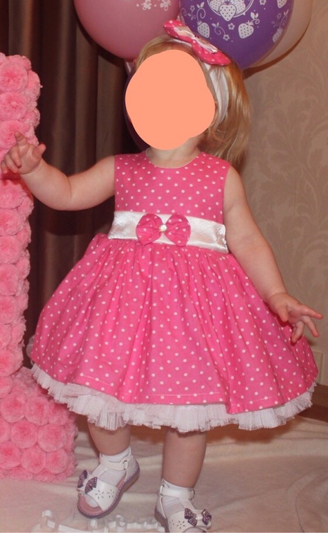 Платье на маленькую принцессу подойдет на возраст 1-1,5г. Пышная юбка, сзади завязывается на ленточку, плюс повязка. Цена 1000р.