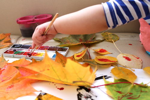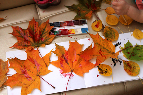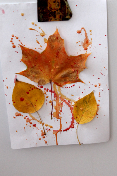 Нарисовавшись на осенних листочках,мы сделали поделку: