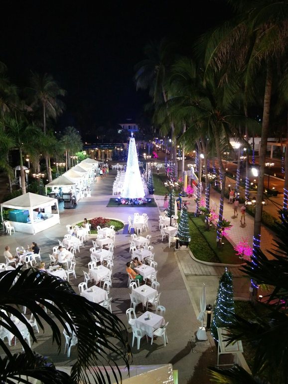 Как я писала выше, дневной сон у нас был в номере, потом мы тусили на территории или в холле около ёлки, а когда спадала жара шли опять на море, и возвращались в номер уже затемно, после ужина. Обмыться, переодеться и снова ходить-ходить (особенность отдыха с начинающим ходунком), благо территория позволяла.