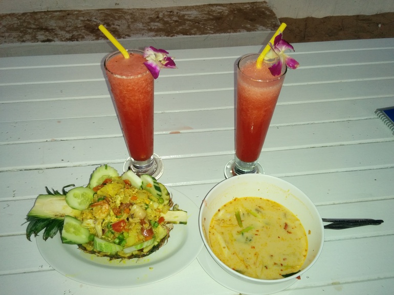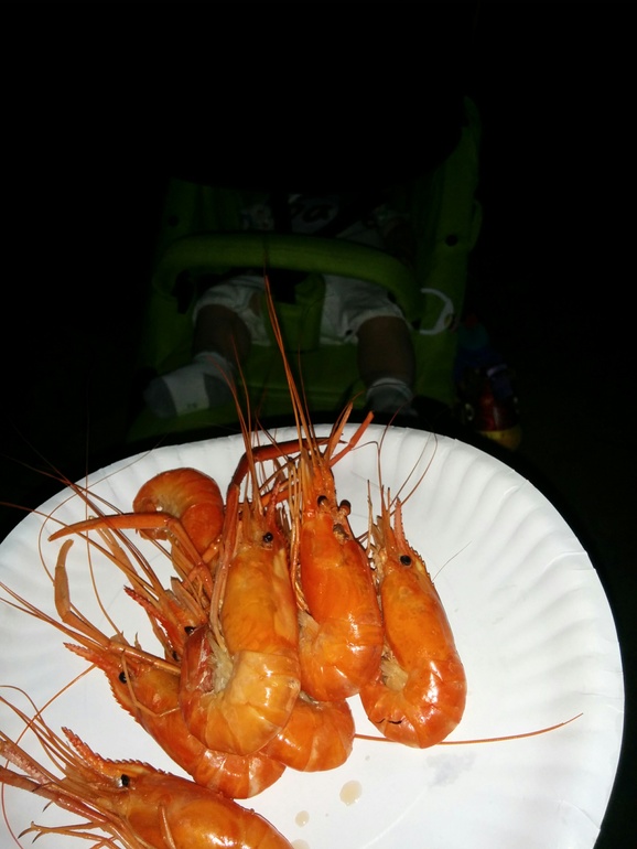 А ужинали на пляже, либо покупали креветки, либо в пляжных кафешках, во время второго Ваниного сна.