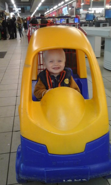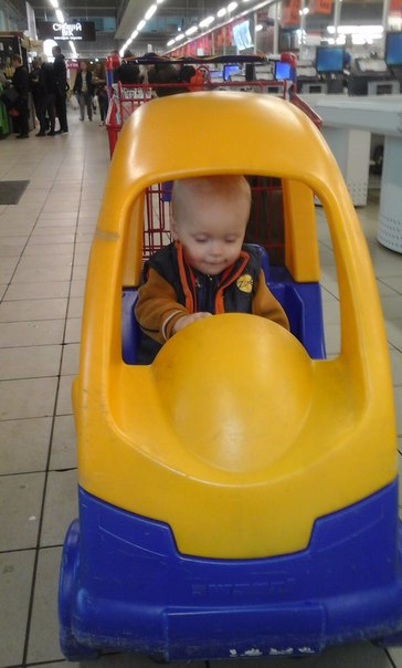 Ну и на последок фото моего мелкого водителя - который наотрез отказался вылазить с тележки - машинки.