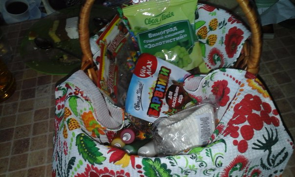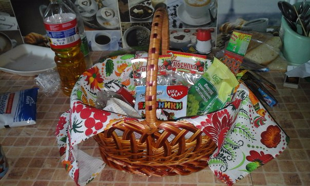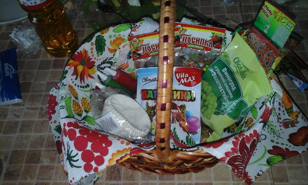 Ну, а потом Остапа понесло. Честно за три года совместной жизни не разу не задумывалась о том что нужна корзинка чтобы пойти на службу святить Пасхи, да и не ходили мы если честно. Нам свекры - постоянно на Пасху передавали свяченное. Поэтому в этом году я решила напечь все сама (надеюсь, что второй сынуля пересидит Пасху в животике) и отправить мужчин моих святить - мужа и сына. Поэтому нагребли всего и вся - посыпки, глазури, наклейки, красители, ванильки, разрыхлители, формочки, сахарные карандаши и т.д. Но самой главной покупкой стала - корзинка и рушник. Как то мысль о том что мои понесут все добро в пакете или сумке душу не грела))) Вот такая красота