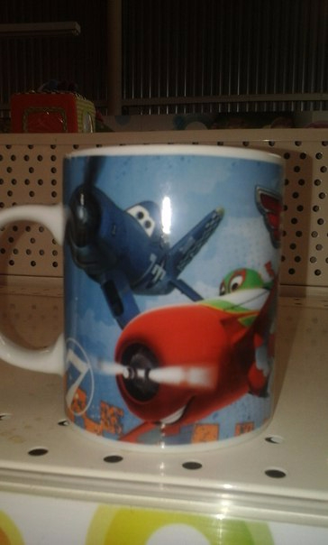Кстати думаю многие девочки знали про акцию в Сильпо на наборы посуды от Дисней по безумно привлекательной цене - 40 гривен (до акции стоили - около 200 гривен). Мы тоже ехали в принципе за ним, а уже потом за подарками и прочим. Но наборов не было - как нам сказали - что наборов было очень мало и почти все разобрали ещё утром. Ну не беда - мама отрыла в стенде чашку с любимым мультиком сына - "Литачками". За фото извиняюсь фоткала прямо в магазине - а теперь даже отобрать не могу - ребенок чуть ли спать с ней не ложится. Красота
