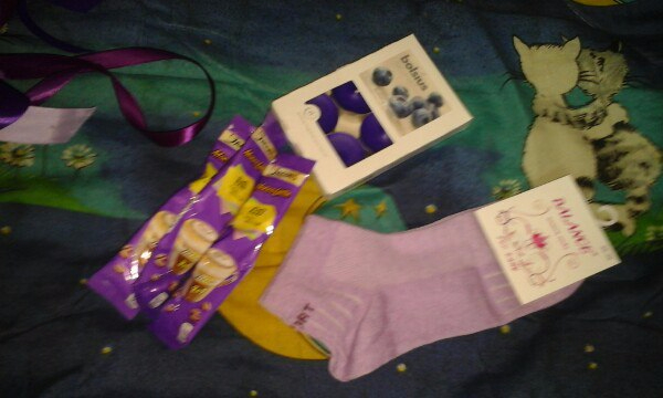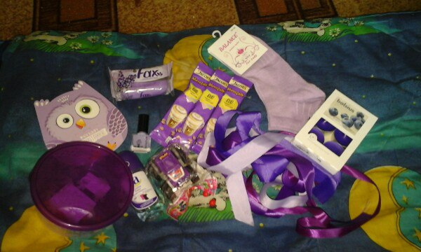 Мои хочушки и обменчикиВот такая прекрасная приехала ко мне фиолетовая посылочка) Приехала она ещё давно, но в тот момент я лежала с младшим в больнице, потом суета и как то всё не было возможности зайти с компьютера и написать отчет. Приехала она ко мне от замечательной и понимающей девушки, организатора игры "Радуга" - Нюта