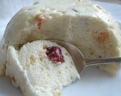 4. Поставить в микроволновку на 5 минут. Проверить готовность, потрогав верх десерта - если на пальце останется след от творога, выпекать ещё пару минут.