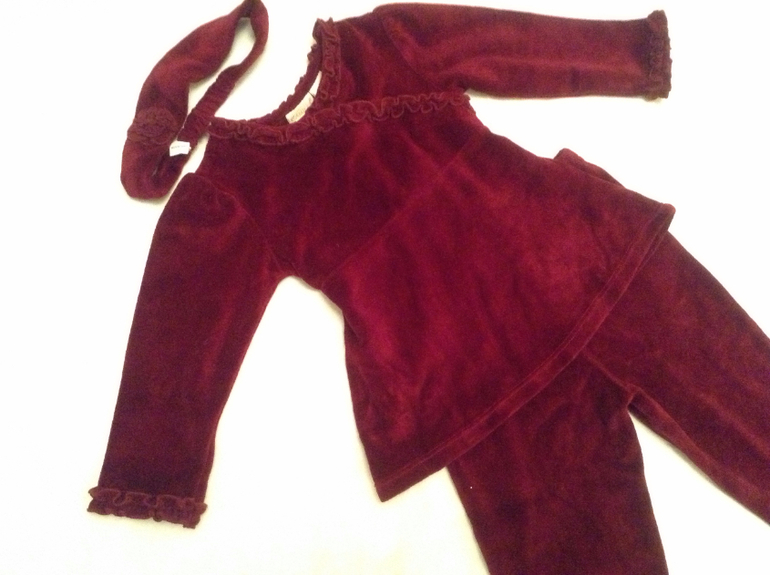 Замечательный костюмчик из велюра. Кофточка, брючки и повязка. Цвет бордо. Состояние нового. Очень нарядный. Прекрасный вариант для праздника. 500 р. Отправлю почтой