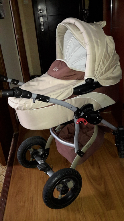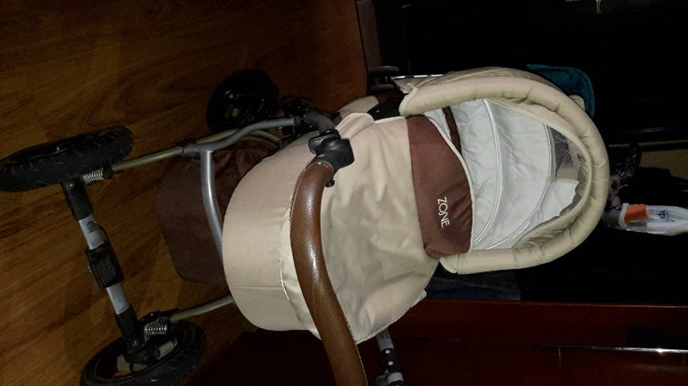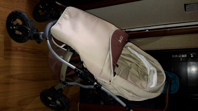 Люлька и прогулочный блок. Коляска в хорошем состоянии. Единственно сдулось колесо. Есть дождевик И сумка. Цена 3800. Цвет универсальный бежевый.