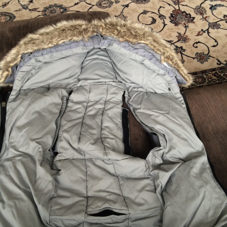 Конверт 2х сезонный,имеет 2 верхние крышечки.Одна с наполнением из пуха,для зимы,вторая для весны/осени.