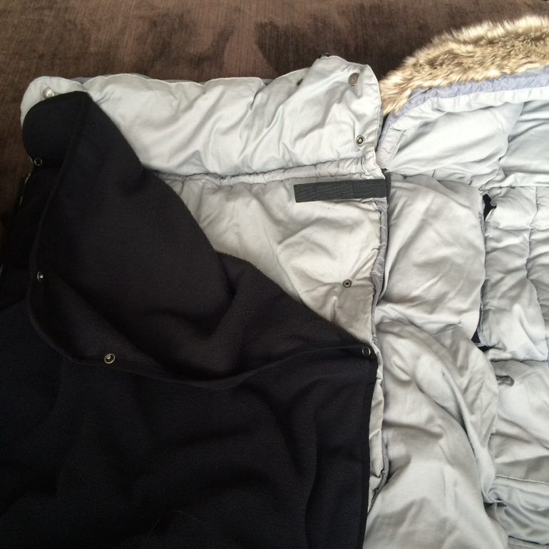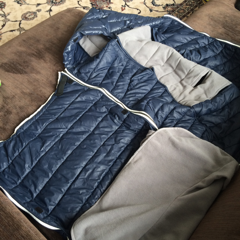 Накидка весна/осень более легкая с дополнительным флисовым одеяльцем,которое можно при желании вовсе убрать.