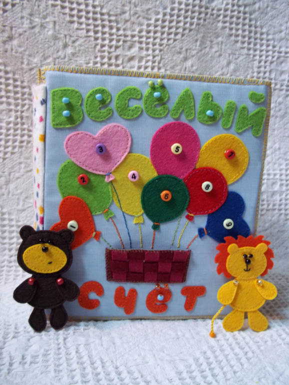У меня уже есть очень похожая книжечка "Учимся считать", но на этот раз шила для мальчика, поэтому некоторые странички решила заменить на более близкие мальчику.