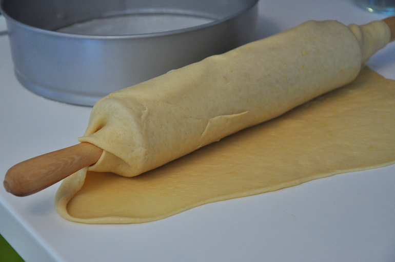 От большого куска теста я отделила 2/3 и остаток спрятала обратно в холодильник.