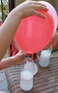 Просто добавьте в уксус щепотку соды и натяните пустой шарик на горлышко бутылки.
