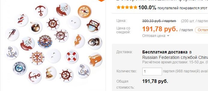 Недавно уже размещала данные по миксу пуговичек для детишек здесь. Фото копировала прямо с сайта. Сюда не разрешают выкладывать ссылки, так что пишите в личку и я Вам вышлю ссылку. Показываю Вам пуговички из моего Избранного по пуговичкам в морском стиле ))) Цены сейчас скопировала прямо на фото, чтобы Вы понимали порядок цен. Вообще на этом сайте есть куча всего. Если кому интересно, то пишите что-нибудь подскажу, где можно там найти.