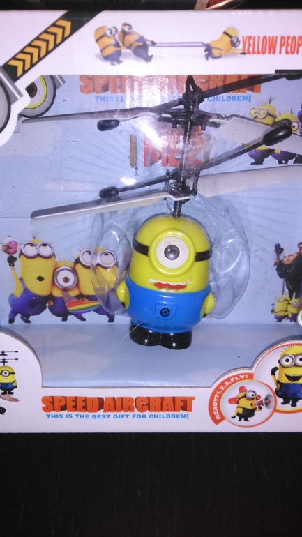 Одноглазый летающий интерактивный миньон. Новый.Заряжается от провода usb 20-30, минут, летает 8-10 минут.Приближаясь к поверхности, снова взлетает. Отличная игрушка для детей. Прекрасный подарок. 1000рублей.Встреча в метро.