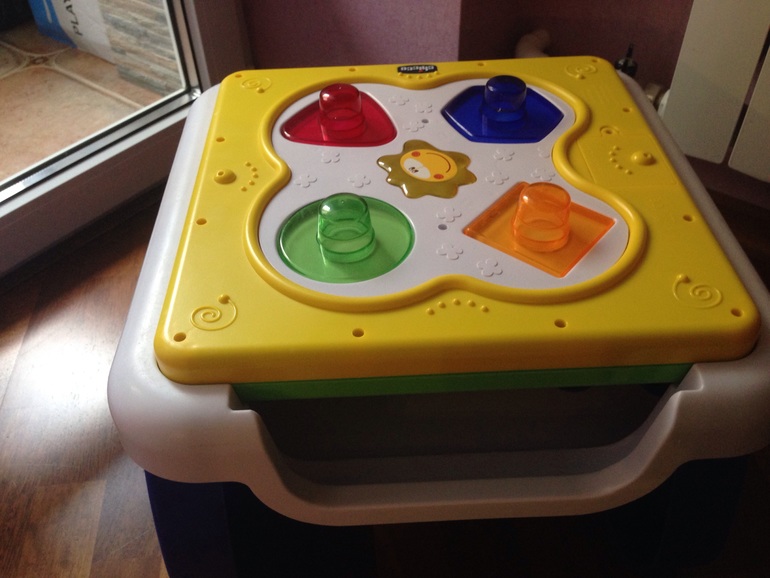 Продам наш двухсторонний столик Chicco, состояние отличное. С одной стороны это пианино с 3-мя режимами работы и множество игрушек для развития мелкой моторики, с другой - музыкальный сортер. Подходит деткам с 12 и до 36 месяцев.