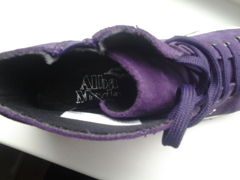 Продам кеды Alba Moda, 36 размер, цвет лиловый, замша , лакированный носок, шнуровка и застежка-молния. Подкладка из текстиля, слегка уплотнённая стелька из кожи, гибкая резиновая подошва. Абсолютно новые, заказывала в интернет-магазине на подарок- не подошел размер((, по стельке около 23 см. Цена 2500 р., могу отправить почтой +300р. В жизни еще красивее, с удовольствием оставила бы себе- но не налезут на ногу 40 размера((((((