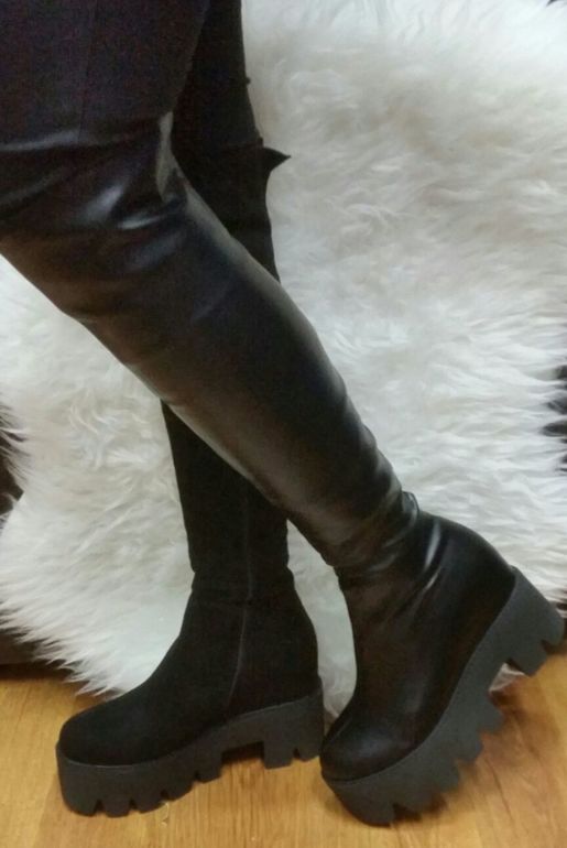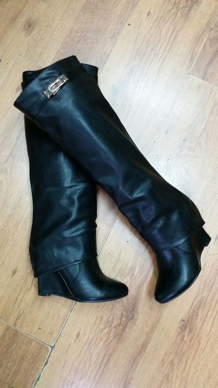 Одна модель - прессовка лак и велюр, на все виды полноты ноги! (на фото в лаковых - женщина 52 р-ра, в велюровых - худенькая, так что находка!)