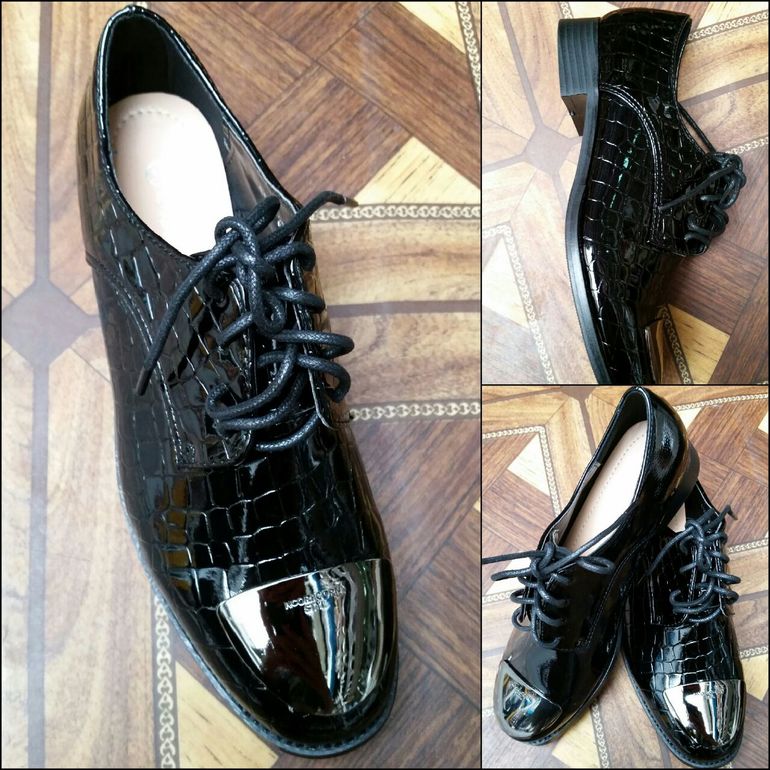 Туфли на шнурках, черные, кожа, лак, в коробках, легкие, идут в размер, 2200р
