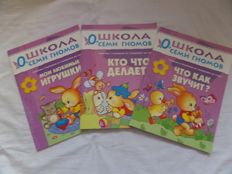 1. Комплект "Школа семи Гномов. от 1-2 года". После многократного использования видно,что не новые, но разрезали только одну. Остальные книжки с целыми заданиями. Пару страничек разрисованы карандашами. Есть еще 3 книжки от 0-1 года. За все 400 руб.