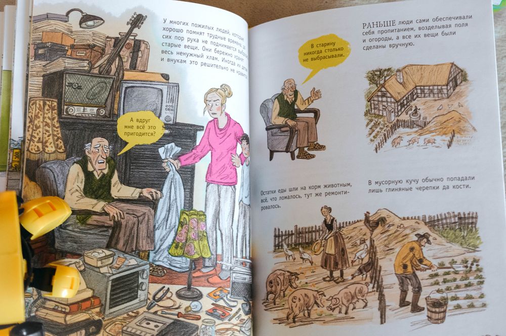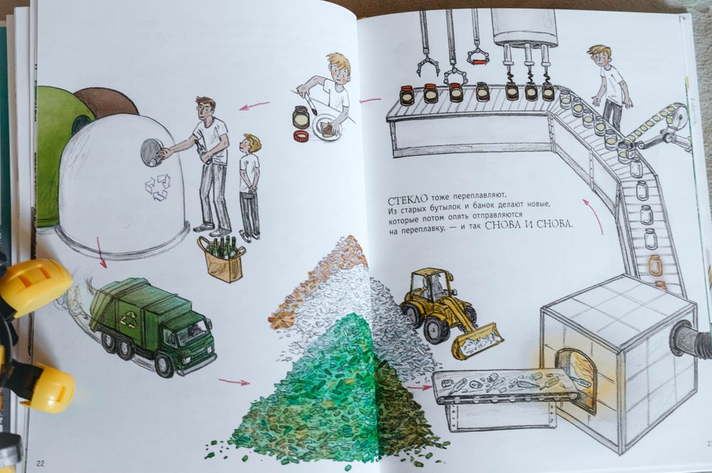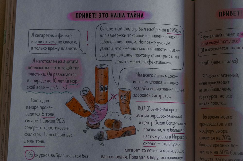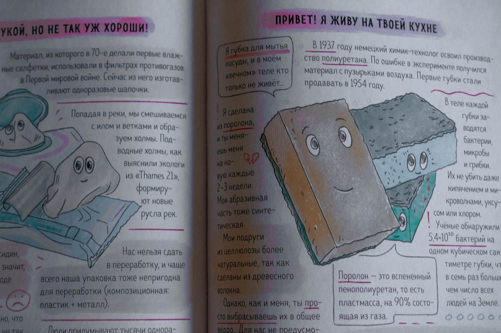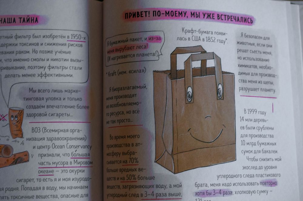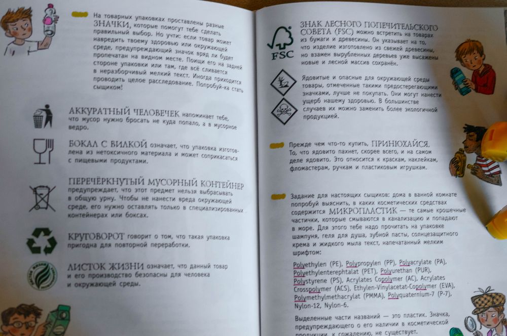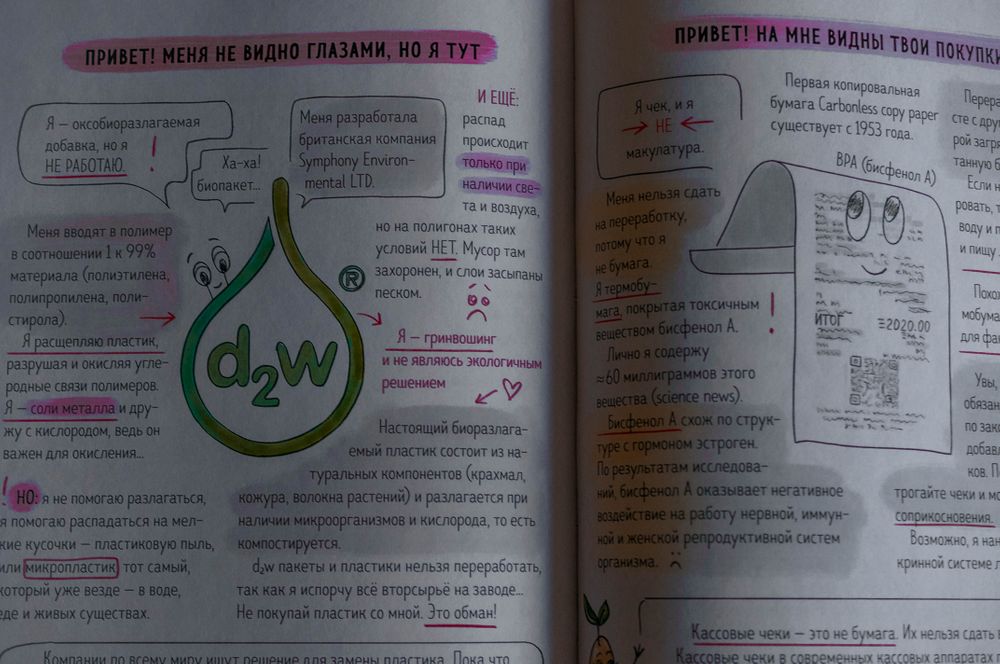 Вторая книга очень подробно рассказывает о разных вещах, какие из них не перерабатываются и лучше ими не пользоваться, а какие нужно выбрасывать в отдельные баки для переработки. Про микропластик, который, к сожалению, просачивается везде. Информации очень много, полезной, познавательной и интересной. Заставляет задуматься и даже изменить некоторые вещи в жизни.