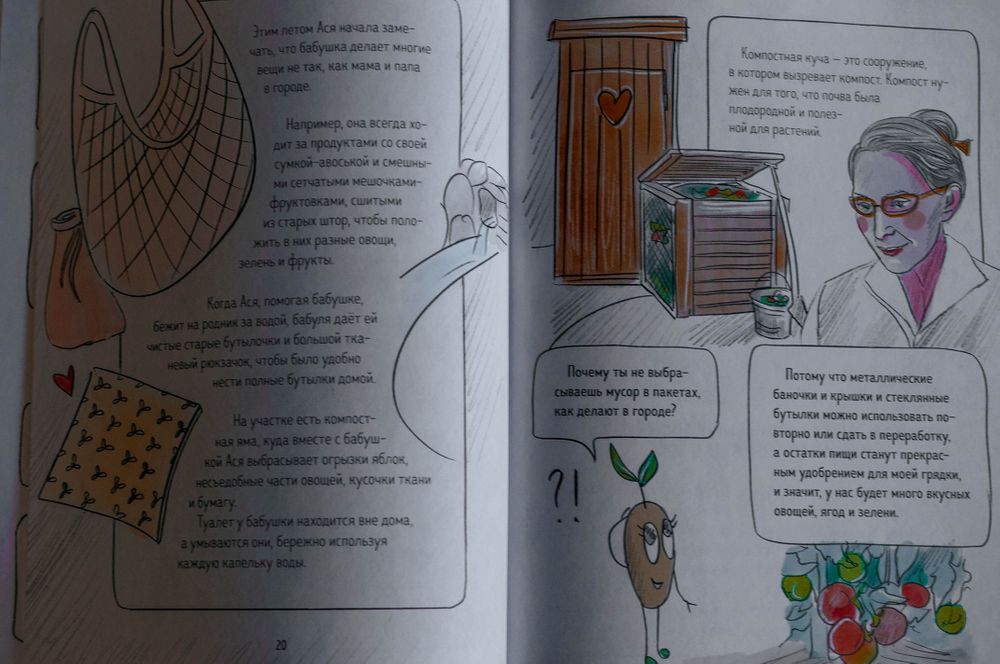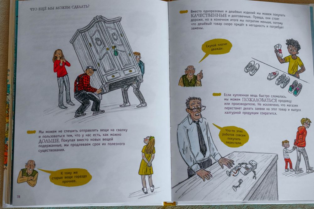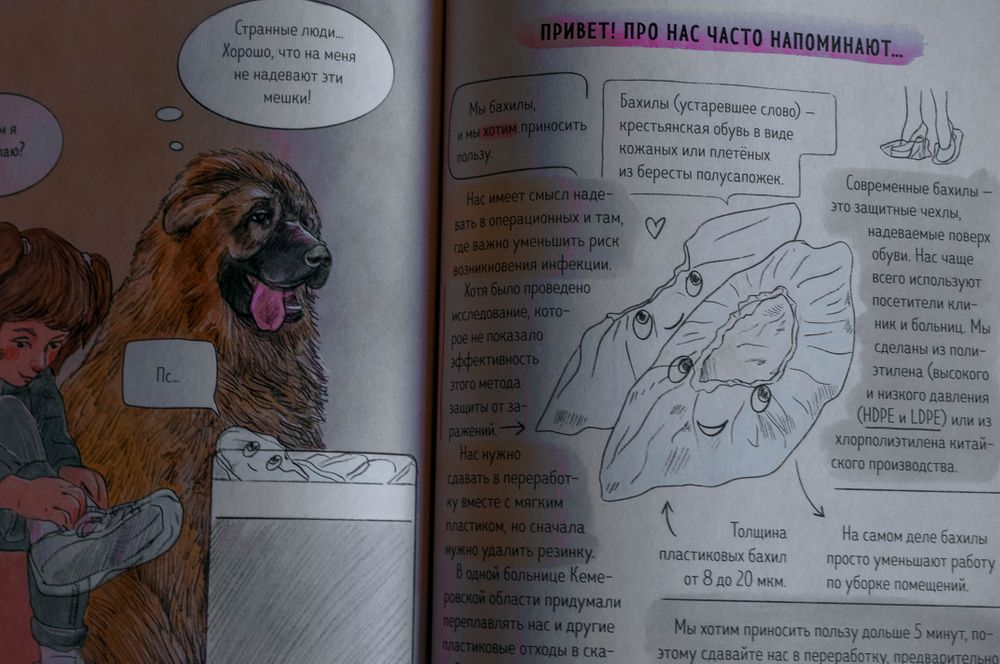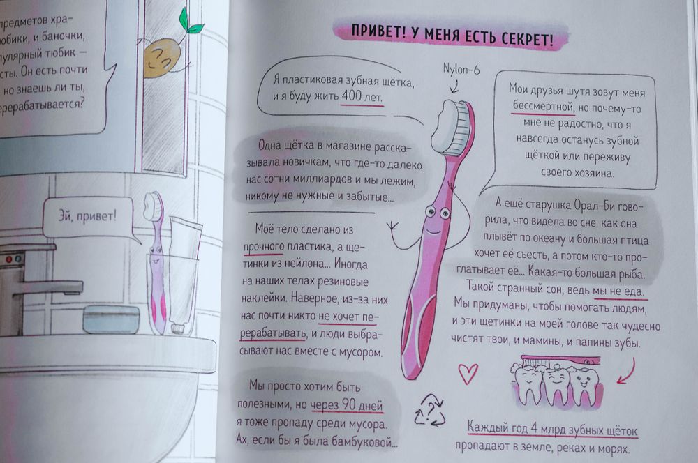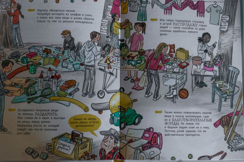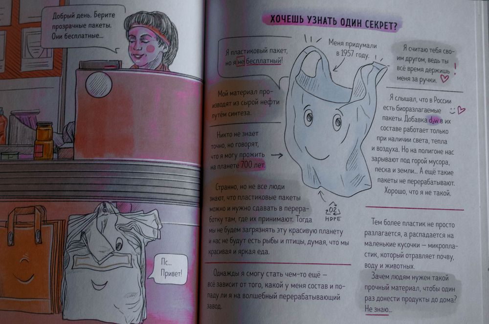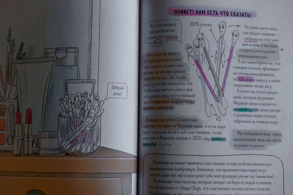 Вторая книга очень подробно рассказывает о разных вещах, какие из них не перерабатываются и лучше ими не пользоваться, а какие нужно выбрасывать в отдельные баки для переработки. Про микропластик, который, к сожалению, просачивается везде. Информации очень много, полезной, познавательной и интересной. Заставляет задуматься и даже изменить некоторые вещи в жизни.