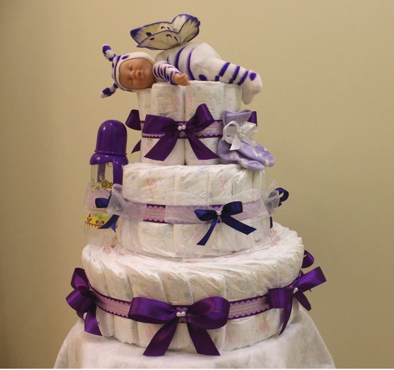 Торты из подгузников для малышей - это оригинальный, очень красивый и в то же время очень нужный и практичный подарок для малыша и их родителей. Родители малыша (или ваша любимая жена) будут восхищены таким подарком и очень благодарны Вам, ведь он будет не только самым красивым, но и очень полезным! Торт из подгузников «готовится» в условиях полнейшей чистоты (используется технология складывания подгузников без их раскрытия- то есть внутренняя часть подгузника не соприкасается ни с какими поверхностями), с соблюдением всех правил гигиены, поэтому мама малышки может с уверенностью использовать все составляющие торта из подгузников по своему прямому назначению. Состав торта, цветовая гамма, тематика может быть выбрана вами заранее. Высота торта (в зависимости от количества и от размера подгузников) около 45 см. Диаметр нижнего слоя (так же в зависимости от выбранных подгузников и их размера) около 32-35 см. Торт из подгузников будет упакован в прозрачную подарочную слюду (стоимость слюды входит в общую стоимость). На фото ниже изображены торты, которые на данный момент есть в наличии в г. Сочи! Доставка по Сочи бесплатно!