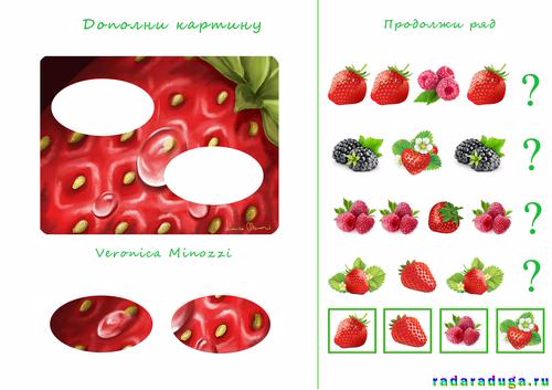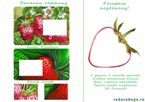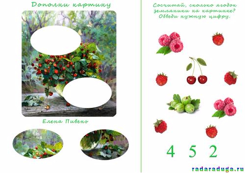 На страничке - задание "Дополни картину художника" + небольшое задание на клубнично-земляничную тему.