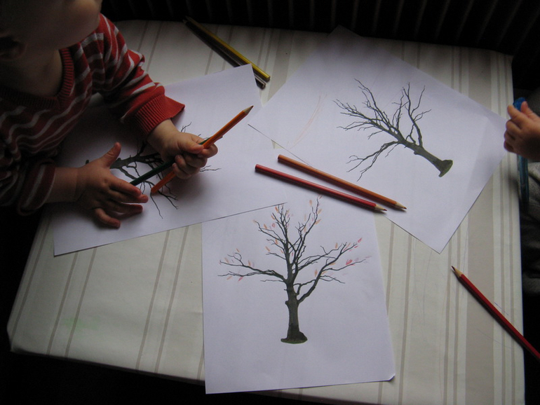 Рисовали листья на деревьях