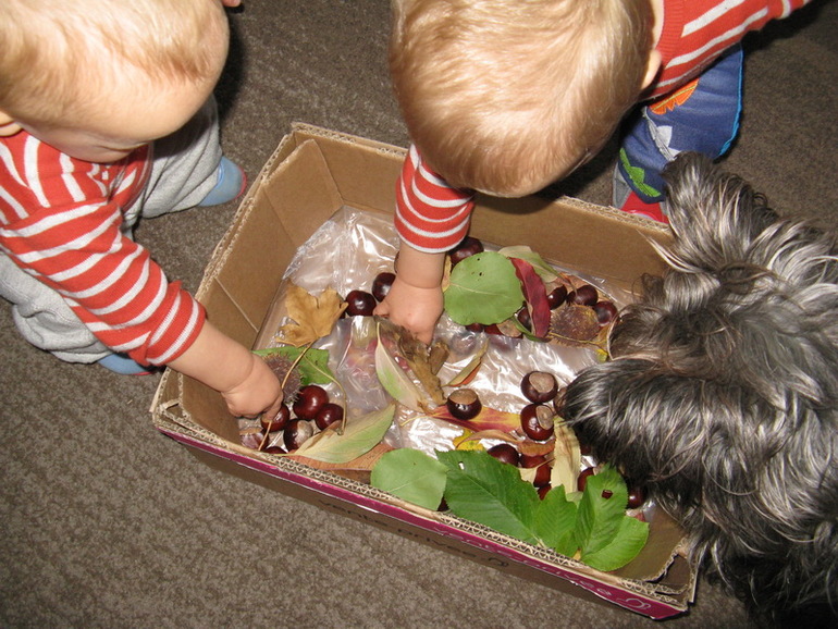 Дома их высушили, и сделали сенсорную коробочку из них и набранных ранее каштанов.