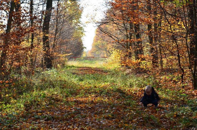 Надо оговориться, что сюда я пыталась попасть уже третью неделю. Однажды мы открыли это место, но вечером, накрапывал дождь, смеркалось, и буквально за 10 минут все погрузилось в темноту. Тогда я пообещала себе, что вернусь сюда при свете дня. Так как даже в относительной темноте там была такая красота! Образованные деревьями туннели, шуршащие под ногами листья, пестрота осенних красок… Но на прошлых выходных приехав сюда, мы наткнулись на развешанные таблички, сообщающие, что идет охота. Решили не рисковать. На нас бы, конечно, навряд ли, кто стал охотиться, но от рикошетов никто не застрахован. И вот, вытерпев еще неделю, я несусь галопом наперевес с фотоаппаратом, чтобы запечатлеть всю эту красоту, и греться ею в позднеосенние холодные вечера.