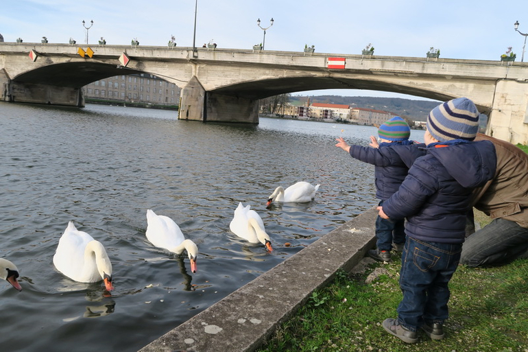 Выход в свет или наши прогулкиНедавно выяснилось, что наши дети очень любят багет. Вот только засыхает он раньше, чем мы успеваем его съесть. Но чтобы добро не пропадало, мы его собираем: часть идет на панировочные сухари, а часть мы решили откладывать - на корм рыб и лебедей, которых у нас на реке немало.