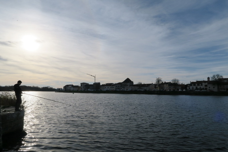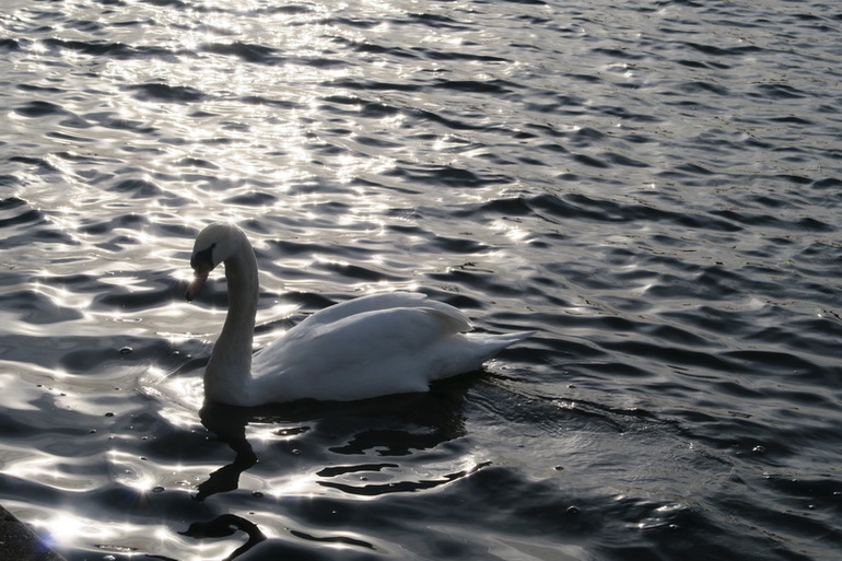 А тут мы кидаем-кидаем, а лебедям хоть бы что. Только рыбаки виднеются.